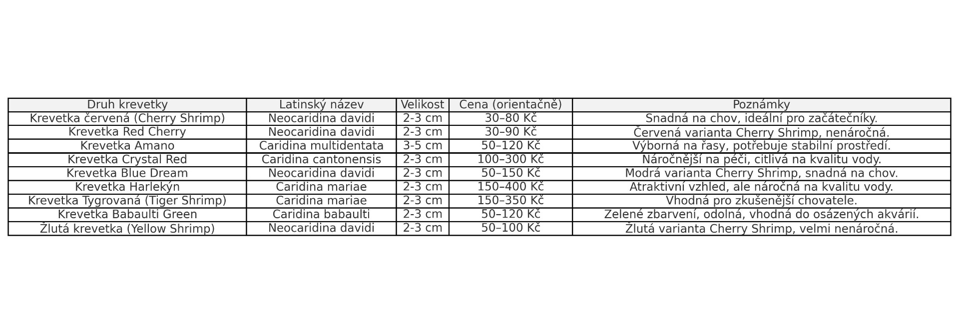 Aby jste měli trochu přehled o cenách krevetek, přikládám tabulku cen.